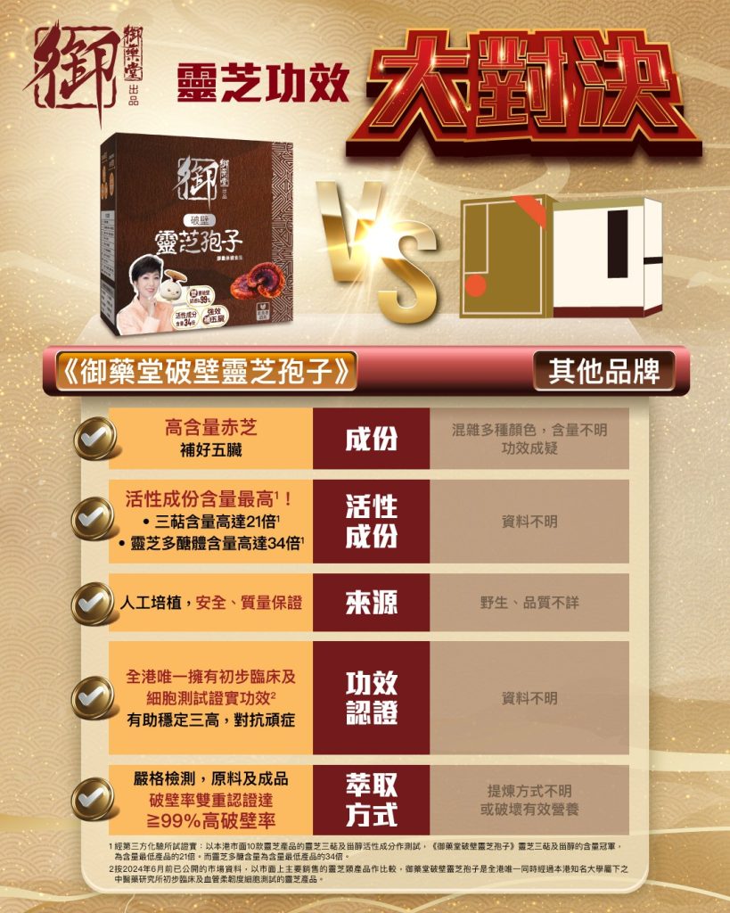 御藥堂自行委託大學機構進行人體臨床測試,採用的是御藥堂破壁靈芝孢子配方,並非簡單引述網上文獻作出聲稱。
