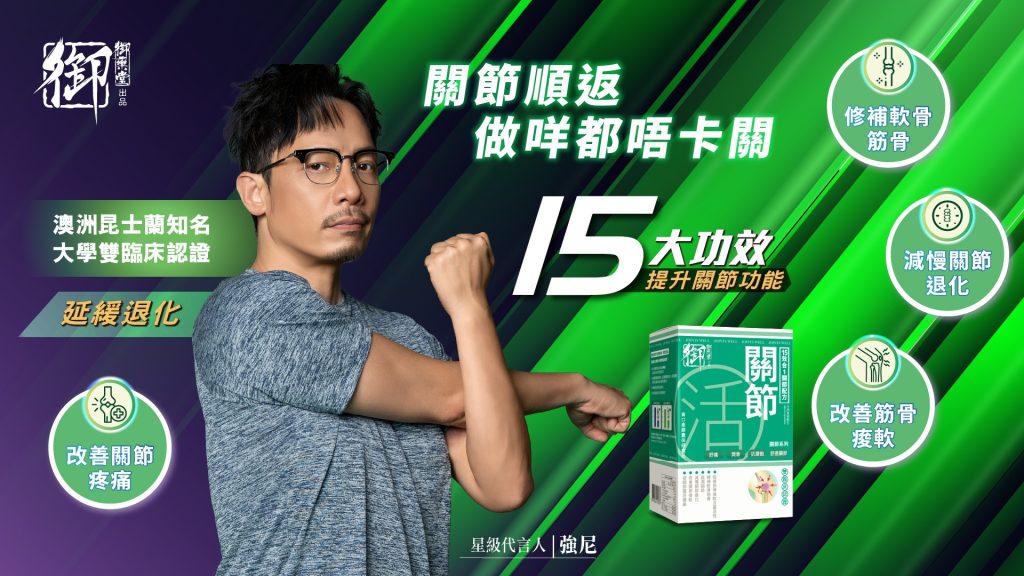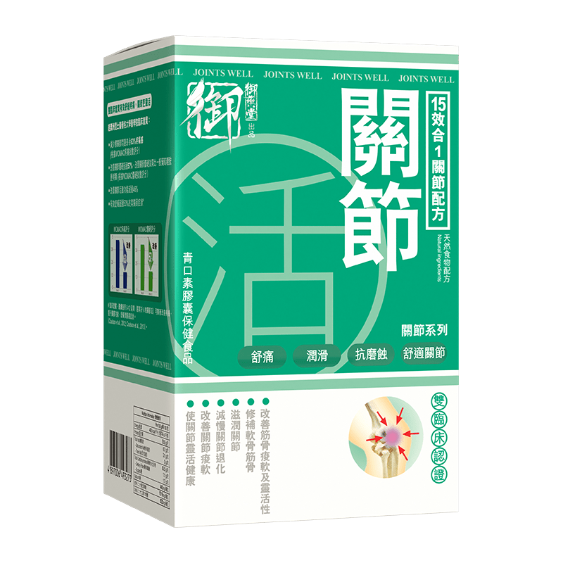 膝關節患者可以從日常生活改善膝關節退化,御藥堂的關節活針對頸、 腰、膝頭等關節磨損問題,產品採用先進冷凍乾燥技術,從紐西蘭特有的綠邊青口提取青口素,當中的醣胺聚糖是組成關節軟骨素和潤滑液的關鍵成分,集合魚油、軟骨素及葡萄糖胺等修護關節的特性,有效護養身體每個大小關節,改善骨骹的活動能力,全面修補受損軟骨,強化關節及軟骨組織,令關節活動自如。青口素功效經澳洲昆士蘭著名大學醫學院臨床證實,能減少膝關節問題患者 63% 疼痛感,並改善關節活動功能超過 46%。