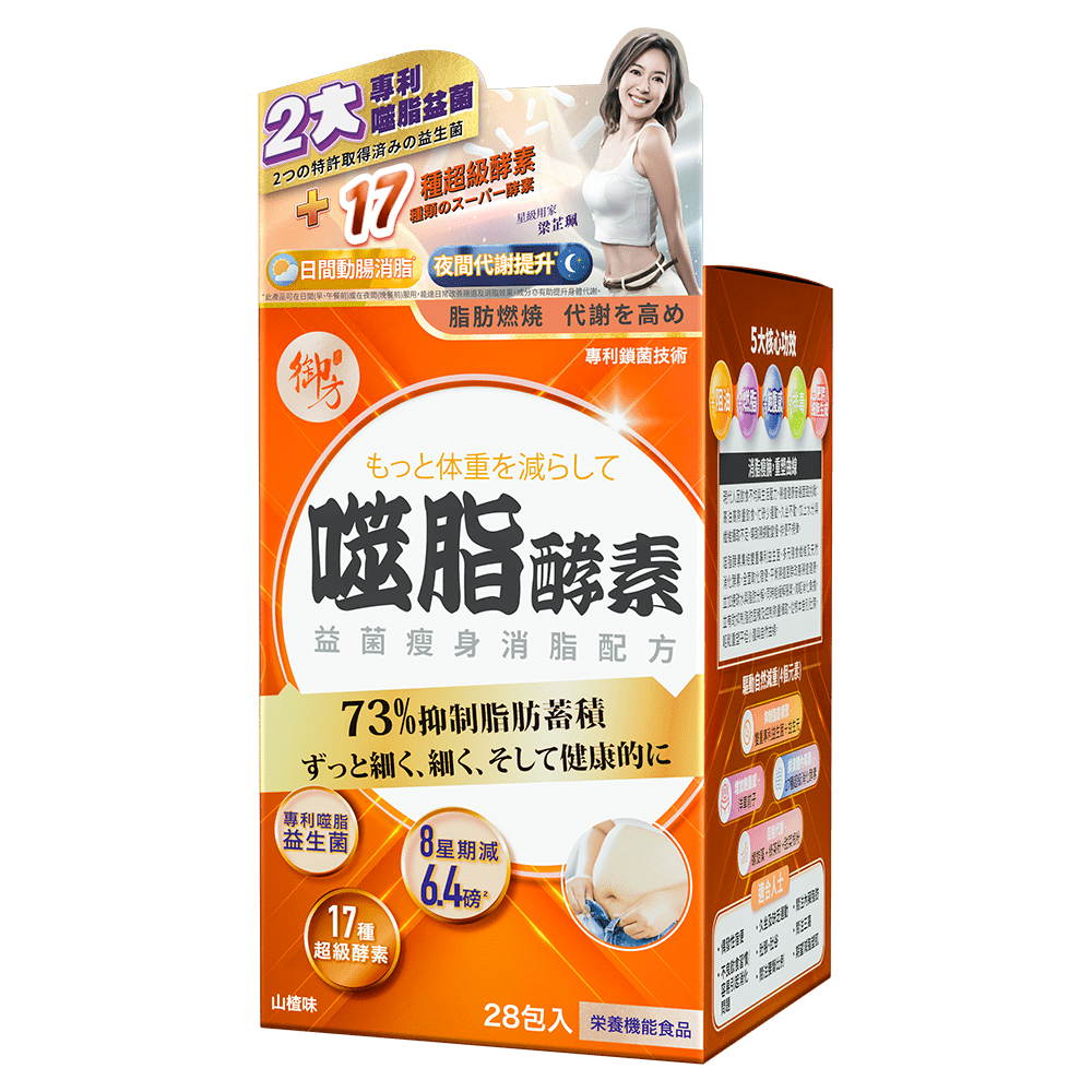 成分: 綜合酵素, 白腎豆, 綠茶, 小麥草, 葡萄籽, 鋸棕櫚