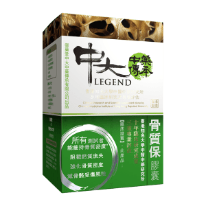 《中大中藥傳承骨質保膠囊》經香港知名大學中醫中藥研究所經過十年臨床研究¹,發現草本成分淫羊藿和女貞子均有阻截鈣質流失的功效,對維持骨骼礦物質密度(BONE MINERAL DENSITY,簡稱 BMD) 有重大幫助。此外,淫羊藿含有強筋健骨特性,配合可阻截鈣質流失的女貞子和使關節強韌靈活的補骨脂一同服用,可大大改善骨骼健康和關節的靈活性,對強化脊骨和髖骨尤其有效。
