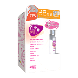《白滑美肌錠》蘊含大量美肌精華,讓你從內到外,美白肌膚,擊退黑斑、淡化色斑,皮膚變得透亮有光澤,配方有助迅速排走體內積聚毒素,令皮膚在正常代謝過程中,通過血液循環不斷補充營養,滲透到皮膚深層,均勻分佈,充分被吸收,由內至外,展現肌膚亮麗,配合特有成分對抗自由基,令肌膚保持美麗水嫩;日夜幫你修護肌膚,全面提升美白效果,簡簡單單,令你變得更 Charming!